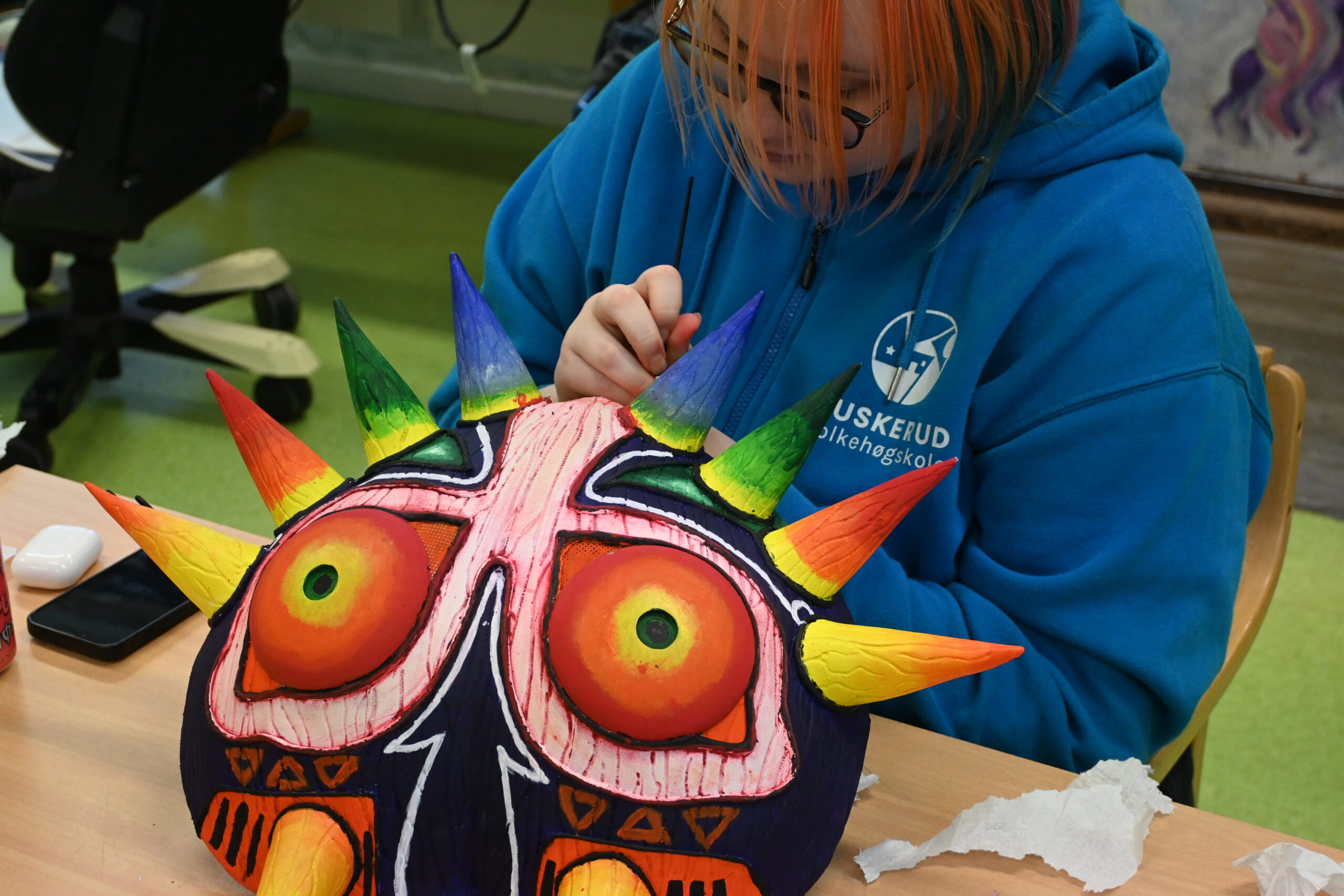 Vi har 3d-printer, skomakermaskin, symaskiner, overlock, airbrush, vinylkutter og laserkutter på klasserommet som du kan utforske og bruke til å lage helt unike cosplays. Hva du ønsker å fordype deg i er opp til deg. På skolen har vi godt utrustede verksteder for cosplay, både for grovarbeid og finarbeid. Vi har eget spray-rom, og i tillegg har skolen eget fotostudio og en stor scene som er perfekt for både catwalks, dans og performance